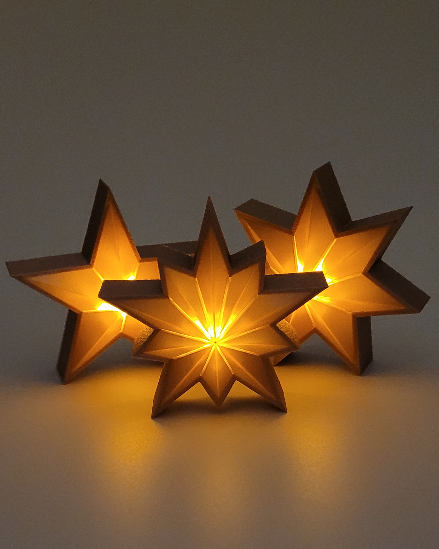 Jeder Stern wird per 3D-Druck individuell gefertigt – nicht nur zu Weihnachten ein echter Hingucker.
